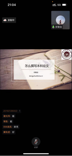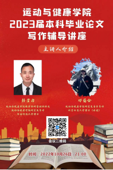 为规范本科毕业论文的撰写,提高我院本科毕业论文的写作质量,2022年10月26日晚9点,我院通过腾讯会议的方式,召开2023届本科毕业论文写作辅导讲座。讲座邀请了我院研究生青年导师,北京体育大学再读博士邓菊会和我院研究生导师、华南师范大学博士、教学科研管理科科长彭召方两位老师进行分享,除2023届本科生参加以外,我院分管教学工作领导周利副院长也一同参与讲座并对同学们提出相关要求。