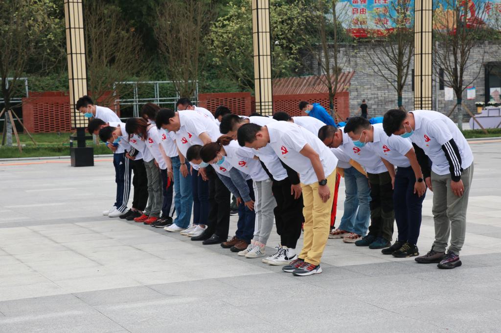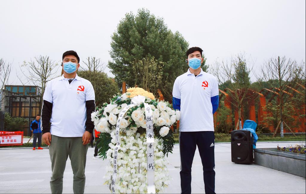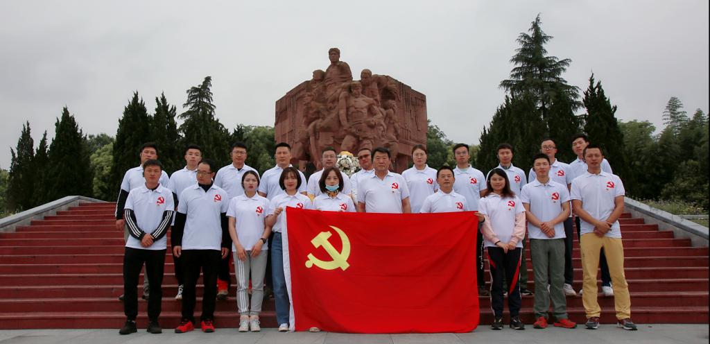 在庄严的革命雕塑前,全体党员向革命先烈进献花篮,鞠躬悼念,表达了大家对老一辈无产阶级革命家敬仰之情。