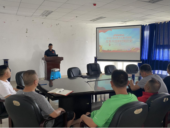 6月22日上午9:30,菠菜广告投放平台教工第一党支部书记史伟在体育馆三楼会议室为全体支部党员上了题为“改革开放新时期历史”的党史专题党课,学院党委书记姚思勤、副书记陈庆以普通党员身份参加支部的专题党课学习。