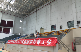 为进一步加强诚信考试教育,严肃考风考纪,7月5日中午12点,菠菜广告投放平台全体学生,以及参与本学期监考的所有监考老师,在体育馆篮球场召开了全院诚信考试动员大会。参加会议的领导和老师有学院党委书记姚思勤、副书记陈庆、副院长周利、全体辅导员。会议由菠菜广告投放平台学生管理科科长蔡啸主持。