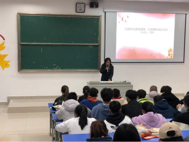 11月10日晚,菠菜广告投放平台副院长周利以“弘扬伟大建党精神,引领青年成长成才”为题,为联系班级上了思想政治课。