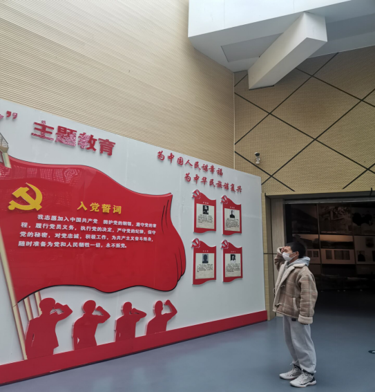 在省博物馆,线上工作人员认真准备的语音解说为学生细述了博物馆里陈列的历史文物,让学生感受到了贵州省的历史发展,见证了古代祖先的生产生活,了解到了贵州的特色文化。随后学生党员在省博物馆三楼“不忘初心,牢记使命”主题教育墙重温入党誓词,向革命先烈敬礼,表达对先烈的敬仰。特别是通过战争场景和文字描述深深感受到了红军不怕流血牺牲的大无畏革命精神,使学生党员了解了自己家乡在长征时代的艰辛故事,也明白了今天的幸福生活来之不易。