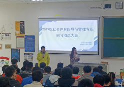 为进一步做好学生实习管理工作,推进本年度学生实习工作的顺利开展,4月20日中午,我院在X1101教室召开2019级社会体育指导与管理专业全体学生实习动员大会。参加会议的有院党委书记姚思勤,学生管理科科长蔡啸,教学管理科科长彭召方,户外教研室主任田维华。会议由辅导员周小援主持。