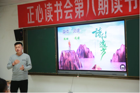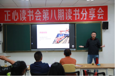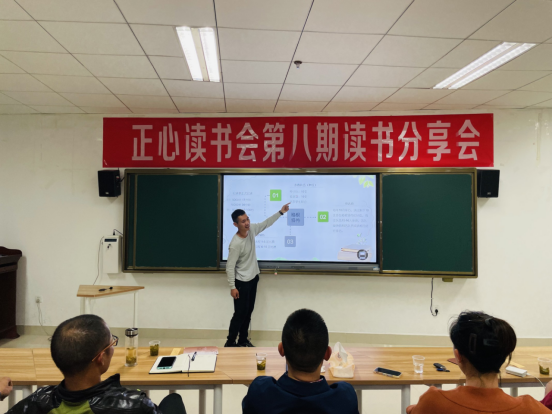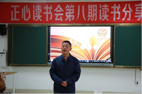 在主持人介绍完出席本次读书分享会的嘉宾后,读书分享会的指导老师李波老师为大家介绍了正心读书会的由来和理念。据李老师介绍,正心读书会的名字源于《礼记·大学》中“欲修其身者,先正其心;欲正其心者,先诚其意”。主要的含义在于作为新时代的中国公民,作为当代大学生,我们要做到的是修身、齐家,共同努力让国得以良治、天下得以和平。而大学的学习本就是“修身”的过程,为了让我们很好的修身然后“齐家治国平天下”,我们要正其心。因此组建正心读书会,把喜欢阅读喜欢书本的人聚集在一起,一起交流分享,一起进行灵魂的碰撞。在正心读书会的理念方面,坚持阅读与运动并举,坚持身体与灵魂并重,因为在寻找诗和远方的路上,身体需要运动来支撑,灵魂需要阅读来丰富。