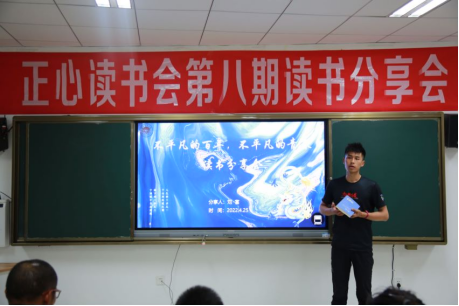 正心读书会第八期读书分享会于2022年4月25日在南校区体育馆三楼多媒体室顺利举行。今年恰逢中国共产主义青年团成立100周年,在五四青年节来临之际,本次读书分享会以“不平凡的百年,不平凡的青春“为主题,献礼党的二十大的召开。