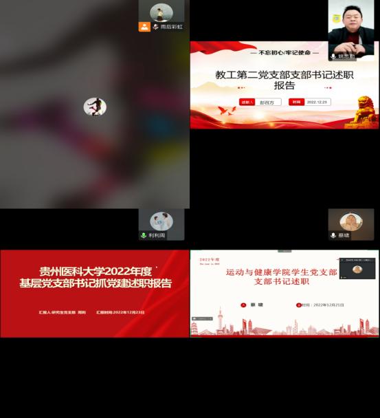 会上,学院教工第一党支部、教工第二党支部、研究生党支部、学生党支部4个支部书记均围绕2022年述职评议考核主要内容、2022 年度高校基层党建述职重点内容清单,结合支部实际工作开展情况逐一进行了述职。